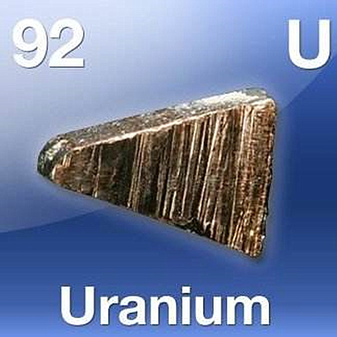 新切開的鈾具有銀白色光澤,是密度最大的金屬之一(19.07g·cm-3)。鈾是一種很活潑的金屬,與很多元素可以直接化合。在空氣中表面很快變黃,接著變成黑色氧化膜,但此膜不能保護(hù)金屬。粉末狀鈾在空氣中可以自燃。鈾易溶于鹽酸和硝酸,但在硫酸、磷酸和氫氟酸中溶解較慢。它不與堿作用。