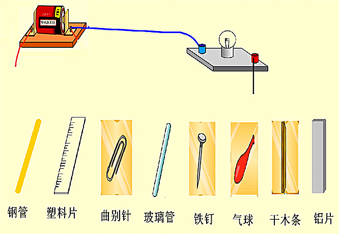 前面提到,在原子中,電子受到原子核的吸引,電子被束縛著,但是,電子一直是以高速圍繞原子核旋轉著的,所以也有擺脫原子核束縛的傾向。在金屬物體的原子中,一部分電子受核的束縛力較弱,有可能擺脫原子核的吸引而逃離出去。在金屬中自由游蕩,我們稱這些電子為自由電子。通常情況下,自由電子是沒有一定目標地游蕩著的,不會形成有規(guī)律的電流。如果我們將金屬接通電源,由于電子是帶負電荷的,這些電子將受到電源正極上正電荷的吸引和電源負極上負電荷的推擠。在電源的作用下電子就排成隊向正極方向移動,從而形成了電流。物體中有電流通過的現象叫做導電,金屬是可以導電的,導電的物體叫做“導體”。