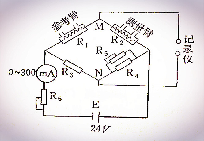 則電橋處于平衡狀態(tài),此時(shí)MN端沒有電壓輸出,即△V=0。