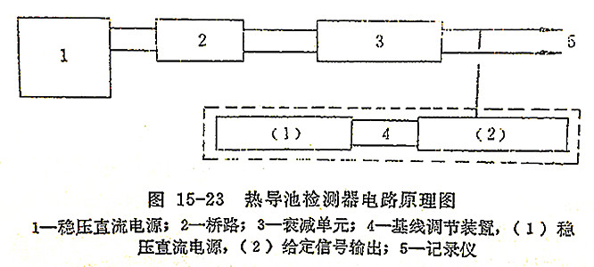 熱導(dǎo)池檢測器工作時(shí)的全部電路系統(tǒng),按其工作性能可分為四個(gè)部分,如方框圖15-23所示。