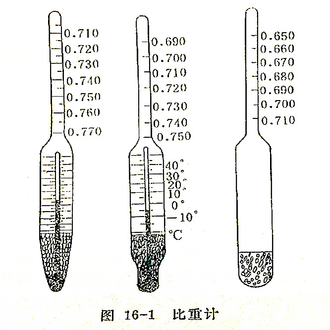 表16-1 Ⅰ、Ⅱ、Ⅲ型比重計(jì)的規(guī)格及適用范圍