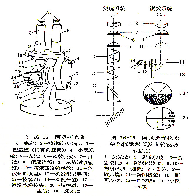 阿貝折光儀 其結(jié)構(gòu)如圖16-18所示。其光學(xué)系統(tǒng)如圖16-19所示。