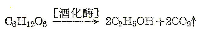 (4)酒化 在糖化液中加入適量的酒化酶(即酵母菌)維持pH值在4~5,在隔絕空氣下酒化三天,這時(shí)酵母細(xì)胞就以發(fā)酵過程中所產(chǎn)生的一部分熱能來維持自己的生命活動(dòng),同時(shí)淀粉水解的糖類也就逐漸變成了酒精,并副產(chǎn)CO2:
