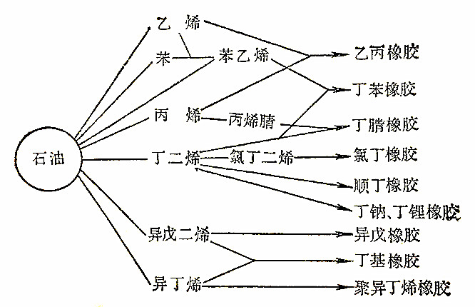 合成橡膠的主要品種有丁苯橡膠、順丁橡膠、異戊橡膠、氯丁橡膠、乙丙橡膠、丁基橡膠等(常稱之為通用橡膠)。