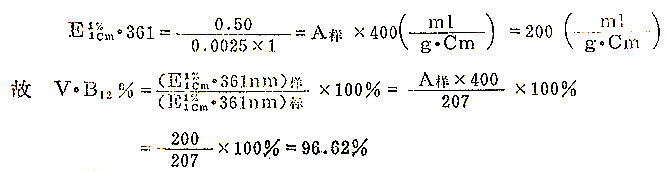 則每1毫升原注射液中純V·B12的毫克數(shù)=每1毫升注射液的標(biāo)示重×V·B12%。