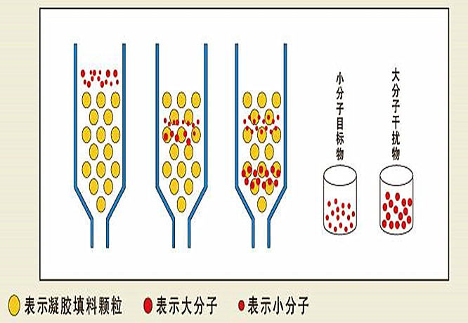 1.脫鹽 在分離生化樣品時,常常需要加入不同pH緩沖溶液,或者采用鹽析法,使樣品帶入各種電解質(zhì),如蛋白質(zhì)溶液的脫鹽等,常常采用交聯(lián)度較大的凝膠,例G-25或Bio-P-2,即使樣品體積是柱體積的25~30%,也不損失分離度,分析速度快且蛋白質(zhì)和酶不變性。