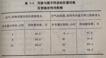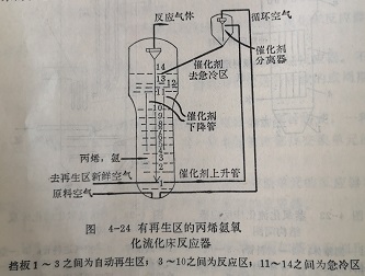 丙烯、氨和空氣不同時在一處進(jìn)入反應(yīng)器,是為了在催化劑床層底部保留一段再生區(qū),使被部分還原了的催化劑再氧化到原來的狀態(tài)。