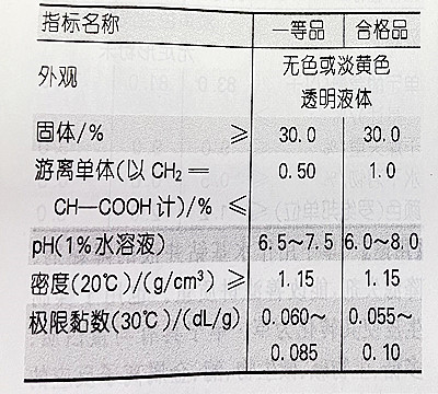 [制法]丙烯酸或丙烯酸酯與氫氧化鈉反應得丙烯酸鈉單體,除去副產(chǎn)的醇類,經(jīng)濃縮、調(diào)節(jié)pH,以過硫酸銨為催化劑聚合制得。