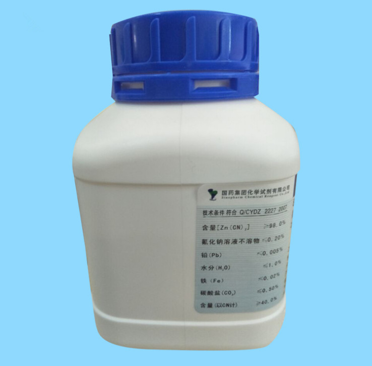 氰化鋅是白色粉末。有吸濕性。溶于氰化堿或氫氧化堿溶液,不溶于水和乙醇。與有機酸無反應(yīng),能被稀無機酸迅速分解,并放出氰化氫。相對密度 1.852。熔點800℃(分解)。高毒,最小致死量(大鼠,腹腔)100mg/kg。