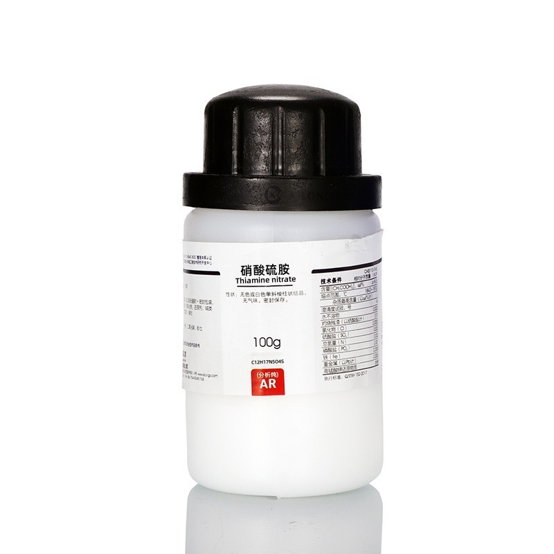 硝酸硫胺為白色晶體粉末,有微弱米糠似的特異臭,味苦,溶解性 極易溶于水,微溶于乙醇,不溶于乙醚、苯、氯仿和丙酮