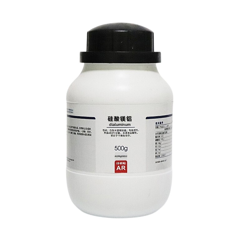 性能當(dāng)硅酸鎂鋁分散于水中時(shí),形成膠態(tài)溶膠和凝膠。該水分散體的粘度隨含量不同而變化。當(dāng)含量為1~2%時(shí)其分散體為膠態(tài)懸浮體,>3%時(shí)為非透明體,粘度迅速增加, 4~5%時(shí)為厚的白色溶膠,當(dāng)達(dá)10%時(shí)則形成堅(jiān)硬的溶膠。硅酸鎂鋁通常的用量為0.5~ 2.5%。硅酸鋁鎂水分散體能很明顯的變性。在配制分散體時(shí),常要適當(dāng)?shù)募訜岷瓦m當(dāng)?shù)难娱L(zhǎng)攪拌時(shí)間,才能達(dá)到一定的稠度。硅酸鎂鋁和小量的纖維素膠混合時(shí),能明顯地增高粘度,并且長(zhǎng)期穩(wěn)定。硅酸鎂鋁水分散體遇某些電解質(zhì)變稠,甚至部分凝聚。本品無(wú)毒無(wú)刺激性,美國(guó)食品和藥物管理局 (FDA) 確認(rèn),硅酸鎂鋁作為食品的添加劑是安全的,并且從未禁止在內(nèi)服藥中使用。