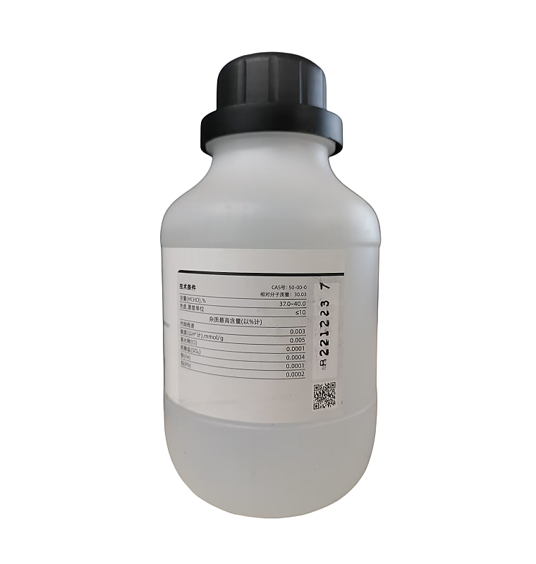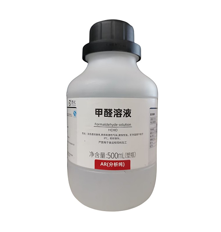 甲醛是一種重要的有機(jī)原料,甲醛溶液為無色液體。本品為約含37%甲醛(HCHO)氣體的水溶液(重量計),一般含10%~15%的甲醇,以防止其聚合。有刺激性氣味。在較冷時久貯易混濁,在低溫時則形成三聚甲醛沉淀。蒸發(fā)時有一部分甲醛逸出,但多數(shù)變成三聚甲醛。本品為強(qiáng)還原劑,在微量堿性時還原性更強(qiáng)。在空氣中能緩慢氧化成甲.