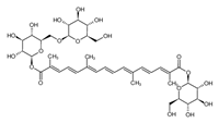 英文名稱:1-[(2E,4E,6E,8E,10E,12E,14E)-b-D-glucopyranosyl 2,6,11,15-tetramethyl-2,4,6,8,10,12,14-hexadecaheptaenedioate] 6-O-b-D-glucopyranosyl-b-D-Glucopyranose