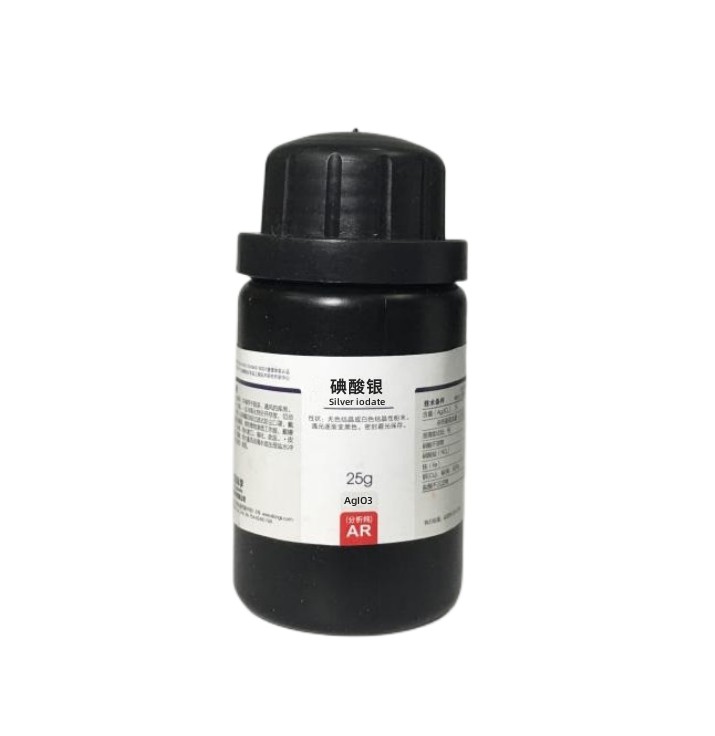 化學(xué)特性碘酸銀又稱碘酸銀Ⅰ是一種無(wú)機(jī)化合物,為白色棱形結(jié)晶性固體,熔點(diǎn)>200℃(dec.)。密度 ρ(25)5.525g/mL對(duì)光敏感。遇光分解。溶于氨水、碘化鉀和氰化堿溶液,微溶于硝酸,幾乎不溶于水。助燃,具氧化性和刺激性,避光貯存。