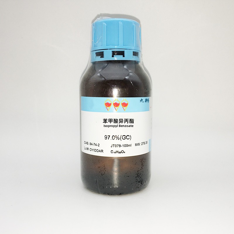 化學特性苯甲酸異丙酯又稱苯甲酸己酯是一種酯類有機物,為透明無色液體,有木香和香脂香氣,并伴有水果香韻.密度:1,01 g/cm3沸點:218°C熔點:-26.4ºC閃點:102°C折射率:1.499溶于乙醇、丙酮和乙醚,不溶于水。可燃。