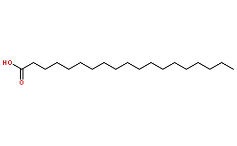 化學性質正碳十九酸又稱硬脂酸是一種有機化合物,為白色粉末,無氣味。溶于熱乙醇、乙醚、苯、氯仿和石油英,不溶于水。pH <7。密度:0.886g/cm3沸點:297 °C (100 mmHg)熔點:68-70°C(lit.)閃點:166.1ºC折射率:1.456儲存條件:2-8ºC,常溫,具刺激性。
