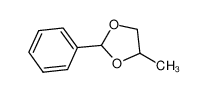 化學(xué)性質(zhì)苯甲醛丙二醇縮醛又稱4-甲基-2-苯基-1,3-二氧戊環(huán)是一種芳香不飽和化合物。透明無色至淡黃色油性液體,呈溫和的杏仁似香氣。沸點83~85℃(533Pa),密度:1.065g/mLat 25°C(lit.),閃點:>230°F,折射率:n20/D 1.509(lit.),蒸汽壓:0.0529mmHg at 25°C,微溶于水,溶于油類,室溫時混溶于乙醇。