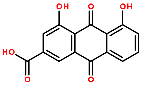 化學(xué)性質(zhì)大黃酸是一種淡黃色至黃色至黃紅色至咖啡色針狀結(jié)晶性固體,具吸濕性。與堿能形成紅色鉀鹽和粉紅色鈉鹽,與氫氧化鈣和氫氧化鋇成為紅色沉淀。λmax:(甲醇)229、258、435nm(ε36800、20100、11100)。溶于堿溶液、吡啶,微溶于乙醇、苯、氯仿、乙醚、石油醚,幾乎不溶于水。熔點 321-330℃(dec.)。沸點346.72°C (roughestimate),密度1.3269 (rough estimate),折射率1.4413 (estimate),儲存條件2-8°C。來源于蓼科植物藥用大黃的根莖。滅火:霧狀水、耐醇泡沫、砂土、干粉、二氧化碳。避免禁忌物。
