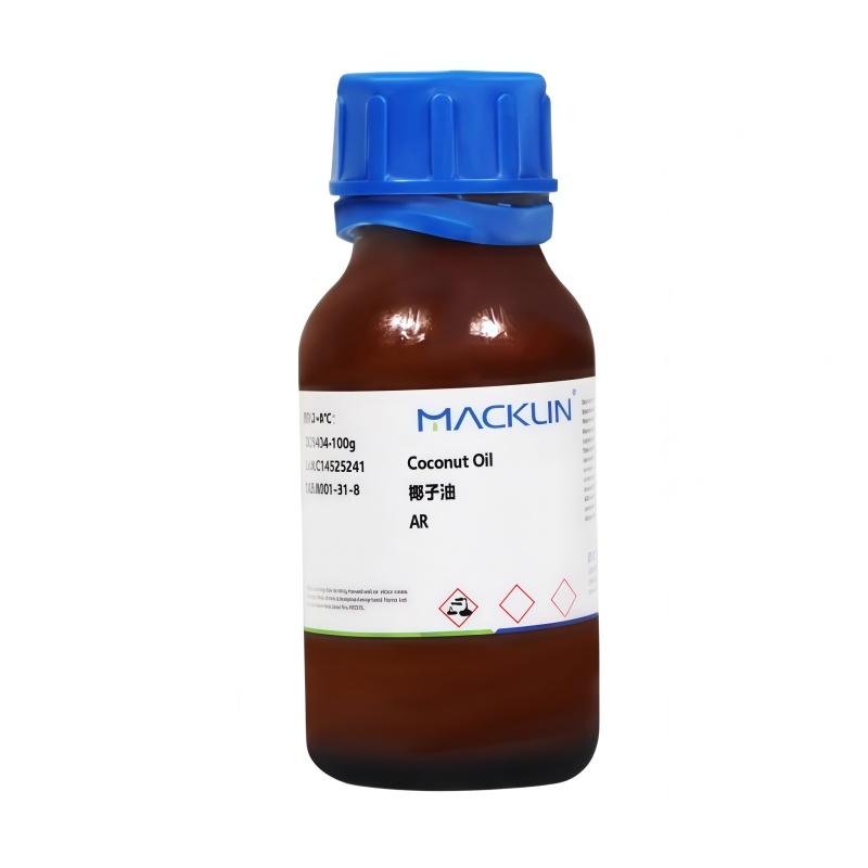 化學(xué)性質(zhì)椰子油又稱椰油是一種取自椰子果肉(干果肉含油約63%~70%)中的油),為白色至淡黃色半固體豬油樣脂肪,有甜果仁香味。其組成為甘油三肉豆蔻酸酯、甘油三月桂酸酯、甘油三棕櫚酸酯、甘油三硬脂酸酯及其他甘油酯。在空氣中穩(wěn)定,可條件下可保持幾年不變。易溶于氯仿、乙醚、二氯甲烷、二硫化碳和石油醚,略溶于無水乙醇,幾乎不溶于95%乙醇和水。熔點 21-27℃。密度 ρ(25)0.903g/mL。折光率 n40/D1.448-1.450。閃點 >235.4℉/>113℃,冷藏品-2-8℃,對環(huán)境無危害。穩(wěn)定性:有甜果仁香味的油脂。有一突變?nèi)鄢蹋瑥?1℃或以下的幾乎片塊狀可塑性固體至27℃時成為液體。