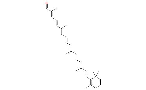 化學(xué)性質(zhì)β-阿樸胡蘿卜素醛又稱全反式-β-阿林胡蘿卜醛是一種含的類胡蘿卜素氧化生成物之一,為帶金屬光澤的深紫色結(jié)晶或紅紫色結(jié)晶性細(xì)粉,幾乎無臭。天然品存在于柑橘皮(0.9~3.4mg,/kg)、橙汁(0.005~0.02mg/kg)等中。不溶于水,能分散于熱水中,易溶于氯仿、難溶于乙醇,微溶于植物油,溶于丙酮、乙醚和環(huán)己烷,熔點(diǎn) 136-141℃。沸點(diǎn) 575.7℃/760mmHg。閃點(diǎn) 525.2℉/274℃,折射率:1.552,蒸汽壓:2.95E-13mmHg at 25°C,冷藏品-2-8℃,滅火:霧狀水、耐醇泡沫、砂土、干粉、二氧化碳。避免禁忌物。