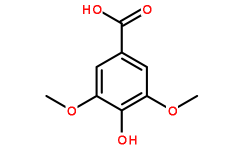 化學(xué)性質(zhì)丁香酸又稱4-羥基-3,5-二甲氧基苯甲酸,是一種有機(jī)化合物,屬于丁香酸衍生物,為白色結(jié)晶粉末,易溶于丙酮、乙醚和氯仿、溶于乙醇,不溶于水,密度:1.335g/cm3,沸點(diǎn):192-193°C 14mm,熔點(diǎn):205-209°C(lit.),閃點(diǎn):192-193°C/14mm,折射率:1.566,水溶解性:5780 mg/L (25 ºC),冷藏品-2-8℃,具刺激性。